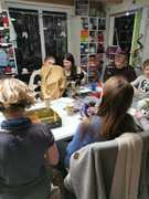Unser Tücherwochenende vom 24. bis 26. Oktober 2025 ist zu Ende gegangen. Die Nadeln sind heiß gelaufen zwischen all den Mustern. Allen Beteiligten hat sehr viel Spaß gemacht und wir haben gemeinsam in gemütlicher Runde Schönes & Kreatives erschaffen - siehe Fotos: